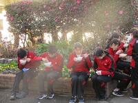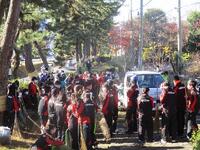 風がとても強く、寒い中でしたが、生徒たちは一生懸命落ち葉を集めてくれました。