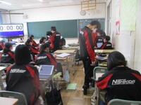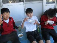 (中)(右)学校に戻ると、錦田中ロータリークラブの皆様が温かい豚汁を振る舞ってくださいました。