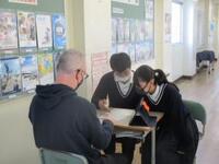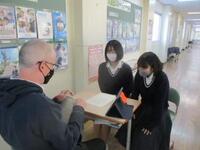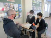 2人組の生徒とALTのドミニクが、「BEACH PARTY PLAN」について話をしていました。
