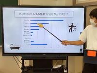 6月17日(金)に学校保健委員会を行いました。「ストレスと上手に付き合おっか!」というテーマで保健委員会生徒がストレスについてのクイズやアンケート結果を発表したり、スクールカウンセラーの竹内先生の講話を聴いたりしました。生徒からは、「これからは睡眠をとろう。」「イヤなことで落ち込まず、前向きに考えよう。」「みんなストレスを抱えているから、人に当たらないで自分がリラックスできることをしてストレス解消しよう。」「物事の悪いところだけでなく、良いところも見る。」「友達や家族に相談したい。」等の感想がありました。ストレスと上手に付き合って、楽しい学校生活を送ってください。