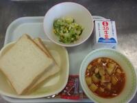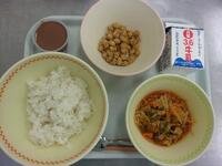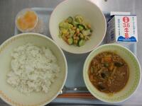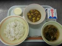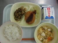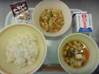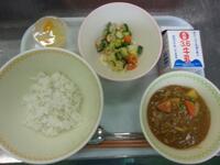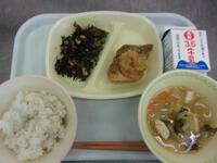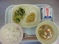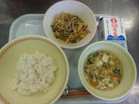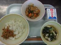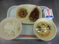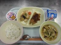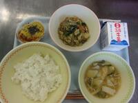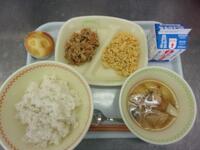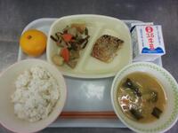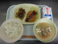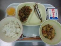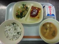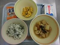 今日はふるさと給食の日です。地域でとれる食材を地場産物と呼んでいます。給食では地場産物をたくさん使用しています。新鮮な季節の野菜を手頃な価格で仕入れることができる他、輸送や包装にかかるコストが抑えられ、環境にも優しいです。静岡県や三島市ではたくさんの食べ物が作られています。身近な土地の食べ物を食べられることに感謝していただきましょう。今日は生産者の今井さんが育てた三島馬鈴薯で作ったそぼろ煮や、林さんの小松菜が入ったみそ汁、県内産の卵を使った玉子焼きです。