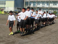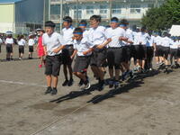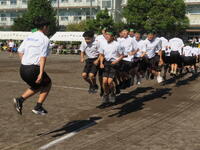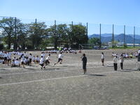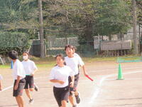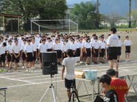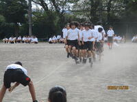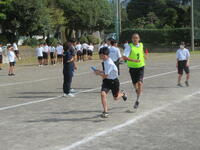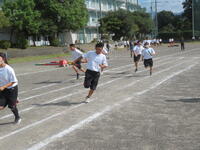 学級団結リレーの様子です。3組、2組、1組、4組の順にゴールしましたが、2組、4組はバトンゾーンを出てしまったため、本番なら失格になるそうです。どのクラスも本番の失格にならないよう最後の確認をしたいものですね。