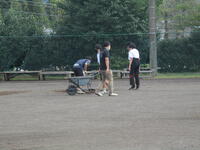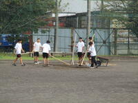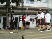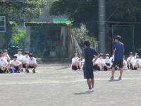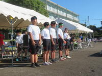 昨夜の雨でグラウンドコンディションが悪かったのですが、生徒・職員力を合わせ、スポンジで水を吸うなどして予定通り実施することになりました。
