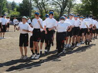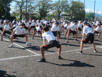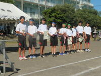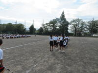 開会式では、校旗掲揚(BGM:校歌)、選手宣誓、錦田中ストレッチ等が行われました。