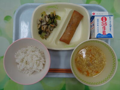 麦入りご飯・牛乳・手作り春巻き