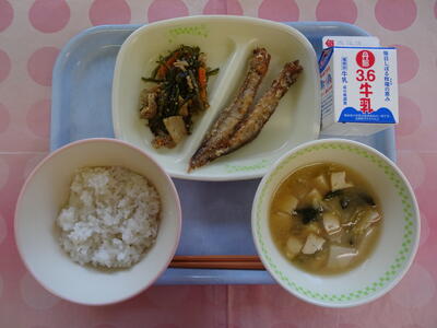 麦入りご飯・牛乳・ししゃもの竜田揚げ