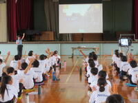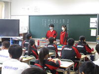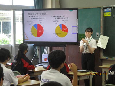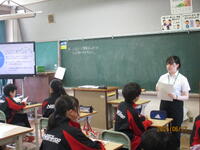 学級活動の授業を、本校の卒業生である佐藤真菜さんが養護教諭の教育実習の一環として