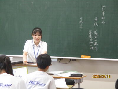 国語の授業を、本校の卒業生である伊藤帆南さんが教育実習の一環として行いました。