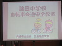 三島警察署から交通安全指導員の方に来ていただき、「錦田中学校自転車交通安全教室」を開催しました。