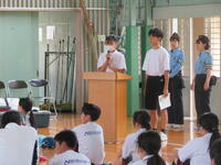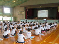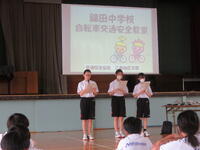 まず、担当の学年委員が錦田中学校の先輩が自転車に乗っているときに交通事故にあい、命を落としてしまったという悲し出来事を伝え、自分たちの命を大切にしようと訴え掛けました。生徒たちの心構えが変わったように思います。