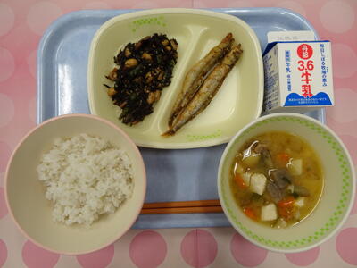 麦入りご飯・牛乳・ししゃものたつた揚げ