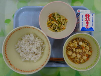 麦入りご飯・牛乳・麻婆豆腐