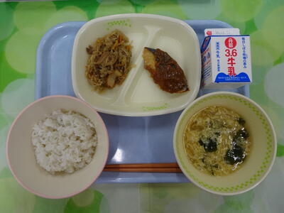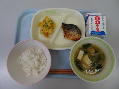 麦入りご飯・牛乳・鯖の幽庵焼き