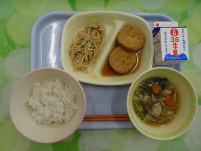 麦入りご飯・牛乳・がんもの煮付け