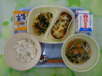 麦入りご飯・牛乳・大豆とひじきのチーズ焼き