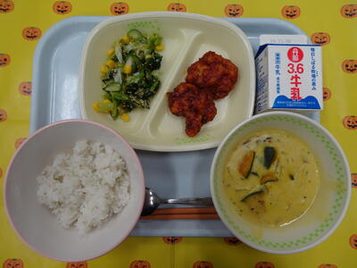 麦入りご飯・牛乳・鰆のカレーあんかけ