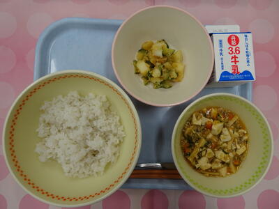 麦入りご飯・牛乳・麻婆豆腐