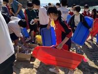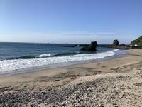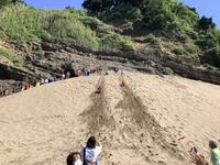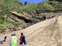 自然体験学習2日目です。昨日の朝の荒天とは打って変わり、ピカピカの晴天です。午前中は、サンドスキー、竜宮窟散策、磯遊び、海の生き物観察、遊歩道散策を行います。
