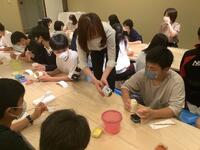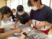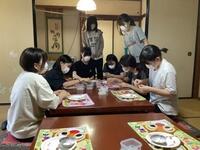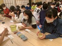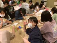 夕食後、湯呑みへの絵付け体験を行いました。色を使って模様やイラストを描きました。完成品が来るのはいつかな…?