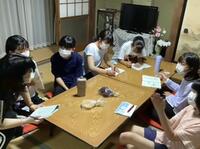 民宿の方とのふれあいタイムです。田牛や下田について疑問に感じていることを民宿の方に質問しました。今までに知らなかった海の人たちの生活について、深く知ることができたひとときでした。