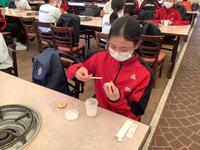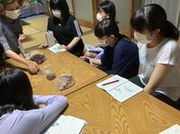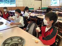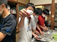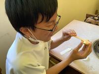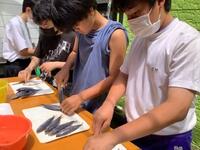 イカの解剖とアジの開きにチャレンジしています。初めて目にするアジのエラにおっかなびっくり。でも、上手に開いています。