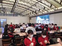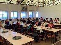 3組、4組の記念撮影です。昨日開いたアジは、田牛の民宿の方が干物に加工し、後日錦田中に送付してくださいます。楽しみですね。