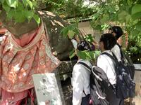 保津川下りの後は、班ごとに嵐山を散策しています。昼食をとったり、土産物を選んでいます。