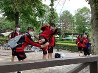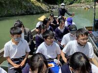 1組は保津川下りです。昨夜の雨でいつもより水量が多いそうです。