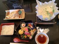 ホテルの夕食です。疲れを癒す優しい和食です。いただきま〜す。