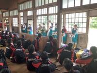 田牛に到着しました。雨のため、青年海の家で入村式です。