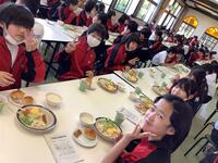 3組、4組の記念撮影です。昨日開いたアジは、田牛の民宿の方が干物に加工し、後日錦田中に送付してくださいます。楽しみですね。