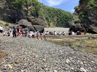 1組、2組の記念撮影です。田牛の海は本当に美しかったです。