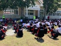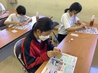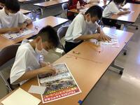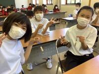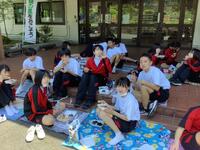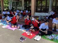 3組、4組の記念撮影です。昨日開いたアジは、田牛の民宿の方が干物に加工し、後日錦田中に送付してくださいます。楽しみですね。