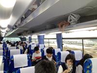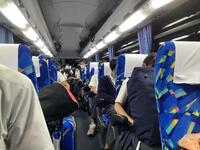 3日間の修学旅行ももうすぐ終わります。車内では食事をし、帰りの会を行いました。帰りの会では、代表の生徒から3日間を振り返っての感想やお礼の言葉がありました。どんな思い出ができたかな?代休でしっかり休み、また元気に学校生活を送りましょう。