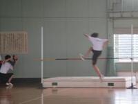 「リズミカルな助走」「力強い踏み切り」「大きな空中動作」「安全な着地」を習得するために、生徒自身の跳び方と正しい跳び方を見比べて課題を見つけ出す内容でした。