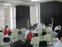 3年生の技術・家庭科(技術分野)では、プログラミングによる制御を行っていました。生徒はビュートビルダーというアプリを使って、問題のとおりにビュートレーサーを動かすことにチャレンジしていました。