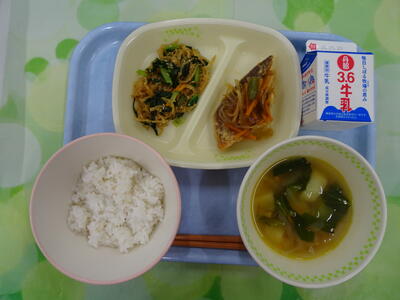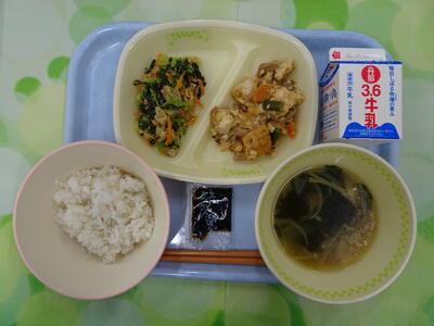 ツナと青菜のごま和え・わかめスープ・のりの佃煮