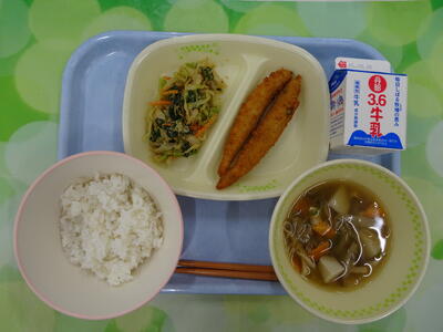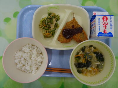 麦入りご飯・牛乳・鰺フライ(ゴマソース)