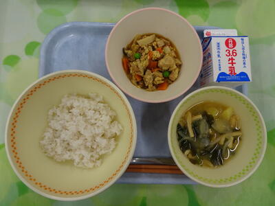 親子丼(麦入りご飯・親子丼の具)・牛乳
