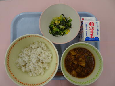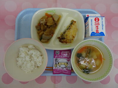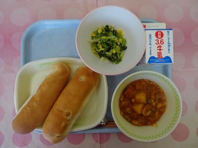麦ご飯・牛乳・里芋のミートカレー・グリーンサラダ