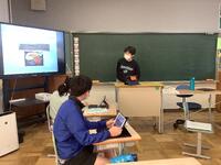 6年生外国語の授業です。洋服や道具など外国でつくられたものについて紹介しました。基本の英文をもとに自分の言葉にして発表することができました。