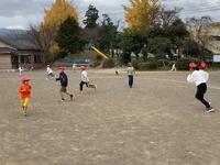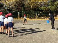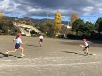 5,6年生体育の授業です。持久走の練習の後は、ソフトボールです。チームに分かれて試合をしました。先生が投げるボールを思い切り打ちます。仲間の声援もあり、楽しんでいます。