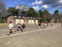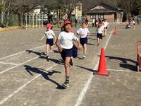 各学年の体育の時間に持久走記録会を行いました。1,2年生は3分間、3,4年生は4分間、5,6年生は5分間、運動場の周回を数えます。11月から体育や休み時間に走り、練習してきました。寒さに負けず走りきりました。