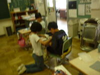夏休みの宿題を先生が集める時も、「この絵を描いたよ。」、「習字はここがうまくできたよ。」と友達と楽しく話をしていました。また、夏休みの思い出をみんなに伝える時も、笑顔で自分の体験を伝えていました。聞いている子供たちも自然と笑顔になっていました。