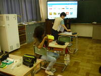 6年生が1年生の教室へ行き、交通ルールを守ることについて話をしました。自分たちで作成したスライドや動画を使ってわかりやすく説明をしました。説明が伝わったか確かめるために問題を出し、1年生はしっかり答えることができました。夏休みも交通安全に気をつけて生活できます!