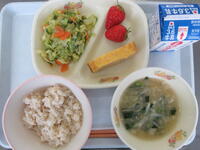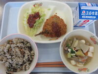 *ぎゅうにゅう *すきやきごはん *わかさぎフライ *グリーンサラダ *みそしる