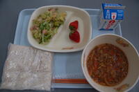*ぎゅうにゅう *チョコカールパン *メキシカンビーフソテー *やさいスープ *くだもの(デコポン)