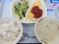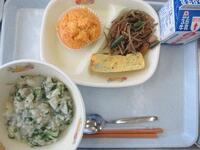 *ぎゅうにゅう *すきやきごはん *わかさぎフライ *グリーンサラダ *みそしる