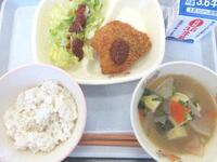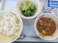 *ぎゅうにゅう *カレーライス(むぎいりごはん・ルウ) *こんにゃくサラダ *てづくりココアプリン