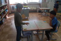 2年生、かけ算九九を一生懸命に覚えています。「五の段」「二の段」「三の段」「四の段」まで学習しました。九九カードを使って、それぞれが自分のペースで覚えていました。